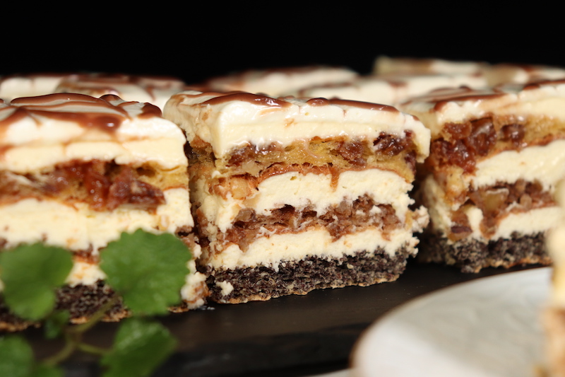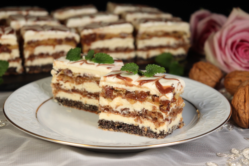 5. Prvo ide korica od maka-krema-korica od oraha-krema-korica od grožđica-krema. Ostavite na pola sata u frižider .