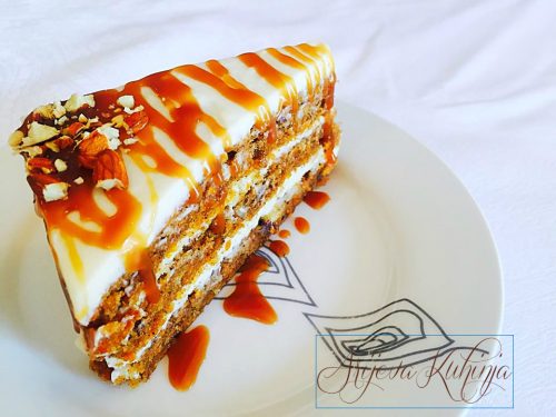 Fina, mekana, sočna i jako ukusna Zekina mrkvica torta koja spada u meni omiljene kolače. Možete je praviti na razne načine, sa čokoladom, pudingom, ali meni je ovakva savršena. Krema od maskarpone sira, krem sira i putera čini ovaj kolač tako posebnim, okus je predivan, ako niste ljubitelj mrkve vjerujte da je nećete moći ” identifikovati” u ovom kolaču 🙂